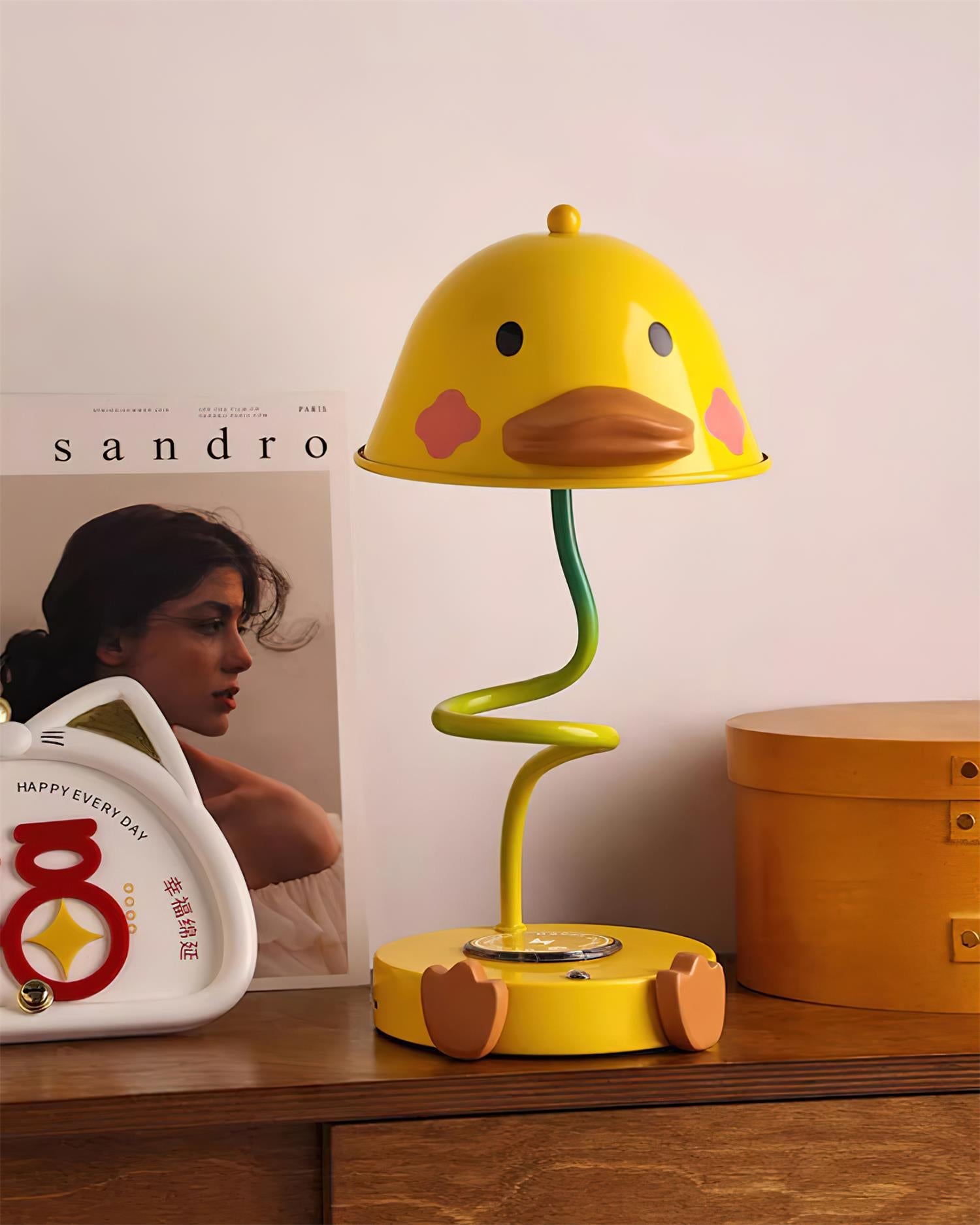 أضف لمسة ساحرة إلى أي غرفة مع مصباح الطاولة "دك". تصميمه المرح يضفي الدفء والطابع الشخصي على مساحتك، مع إضاءة ناعمة ومحيطة مثالية للاسترخاء أو القراءة. يتميز هذا المصباح بتصميمه الصغير والأنيق، وهو قطعة ديكور مثالية تُضفي على منزلك لمسةً من النور والطابع المميز.