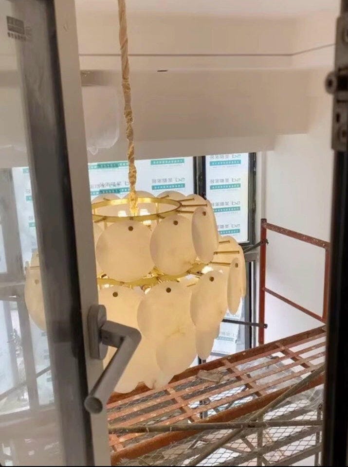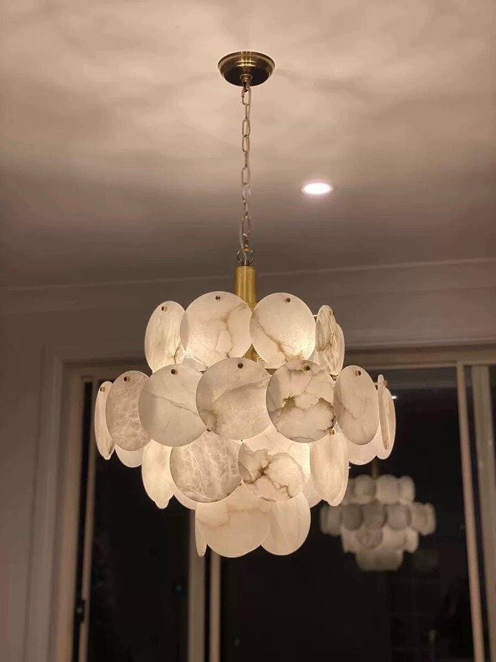 Graceful as a floating sculpture, the Alabaster Shell Chandelier drapes your space in luminous elegance. Its cascading alabaster panels, shaped like delicate shells, catch and soften the light, creating a warm golden halo from above. Anchored by a brass frame with soft curves and rich tones, this chandelier doesn’t just illuminate—it sets a tone of elevated tranquility. Perfect for statement ceilings and curated spaces where art and function intertwine.