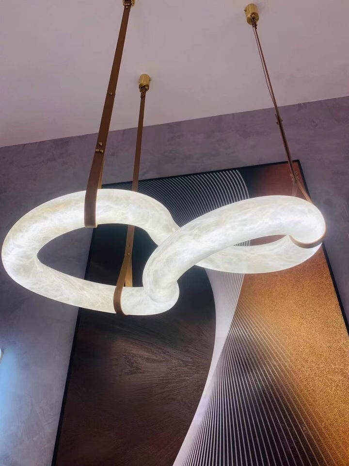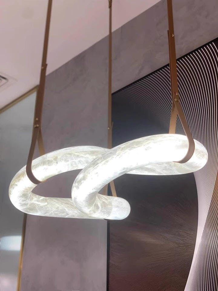 Illuminate your space with the Luxe Loop Alabaster Chandelier, a perfect fusion of style, luxury, and innovation.
