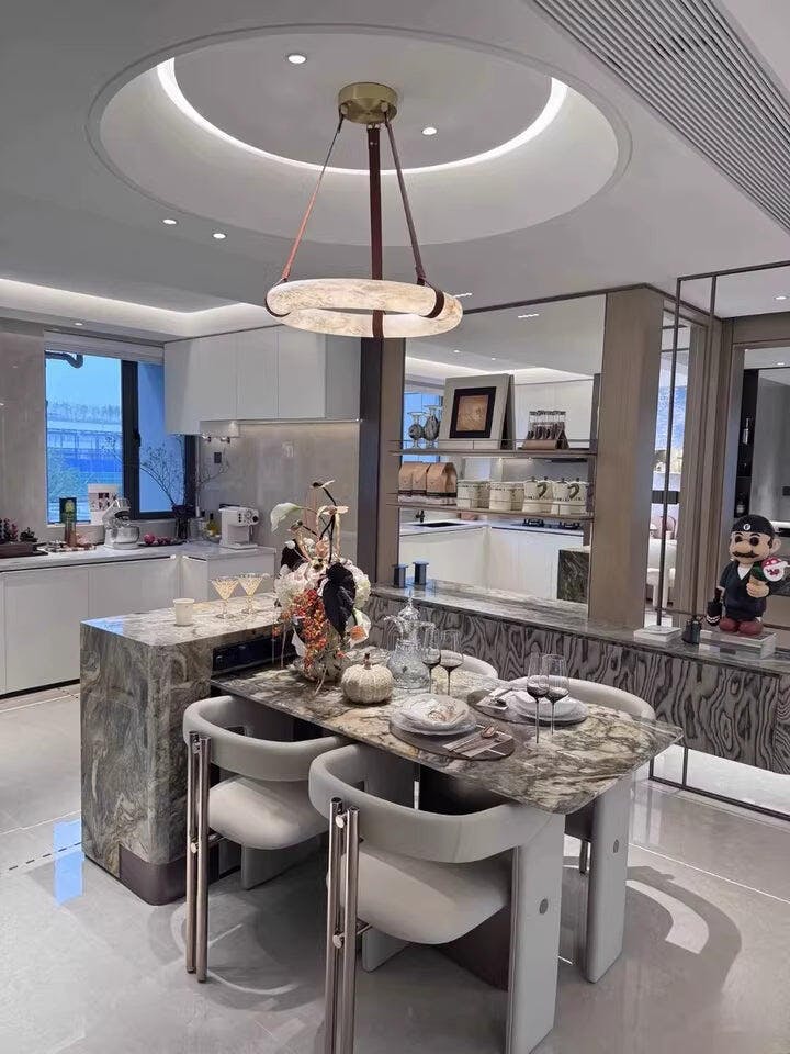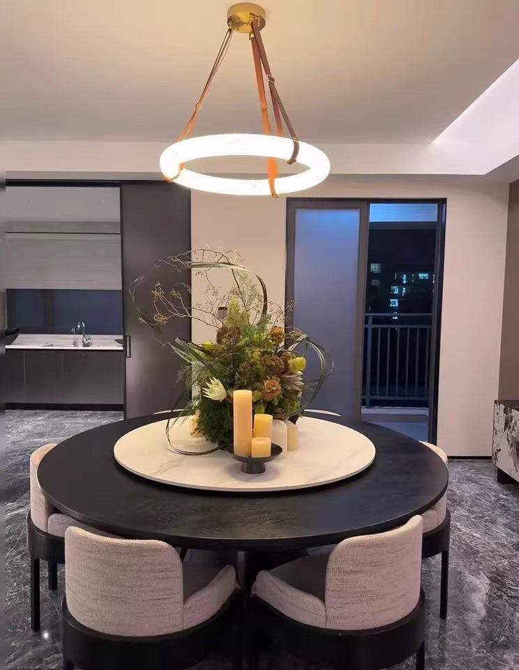 The Regal Ring Alabaster Chandelier offers a unique and elegant aesthetic, combining high-quality materials with timeless design. Its clean, minimalistic form allows it to complement a wide variety of modern spaces, making it a versatile addition to any home or commercial setting. Add a touch of luxury and artistry to your interiors with this one-of-a-kind chandelier.