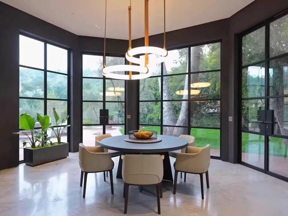 The Regal Ring Alabaster Chandelier B combines the elegance of alabaster with leather and brass accents, featuring a suspended design that creates a floating, modern aesthetic. The soft glow from the alabaster ring adds warmth to any space, while the leather straps and brass fittings offer a refined touch. Perfect for living rooms, dining areas, or high-end commercial spaces, this chandelier provides both beauty and functionality.