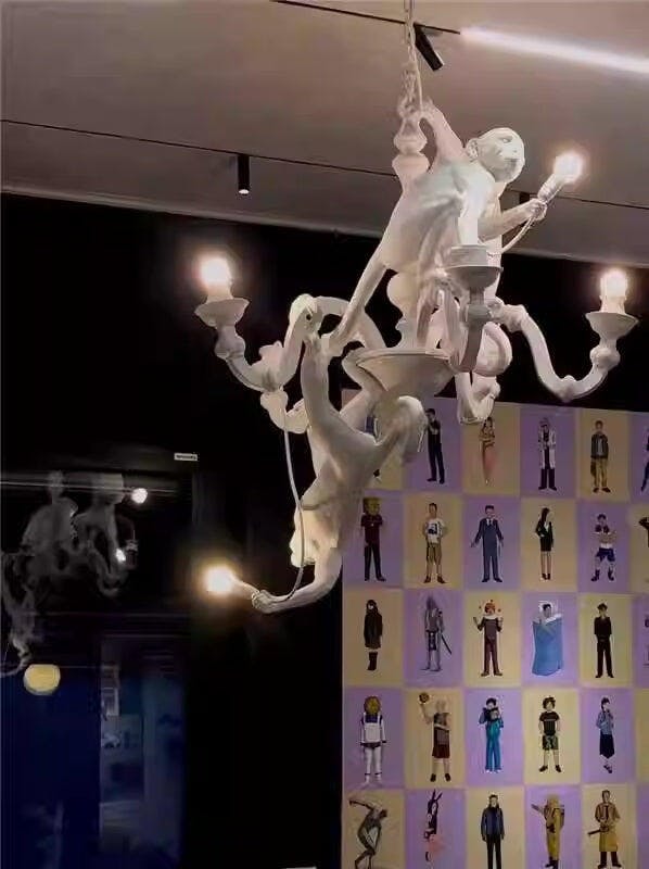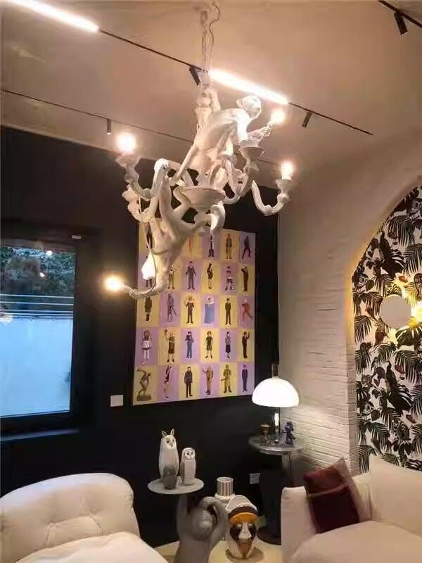 Break away from the ordinary with the Climbing Monkey Chandelier—a lighting fixture that blends playful charm with artistic drama. Sculpted in the form of mischievous monkeys climbing a vintage-style chandelier frame, this piece turns any room into a conversation starter. Crafted with careful attention to detail and suspended by an iron chain, it’s a perfect fit for eclectic interiors, creative studios, or themed hospitality spaces. Whether it’s turned on or off, this chandelier adds whimsical elegance to your environment.