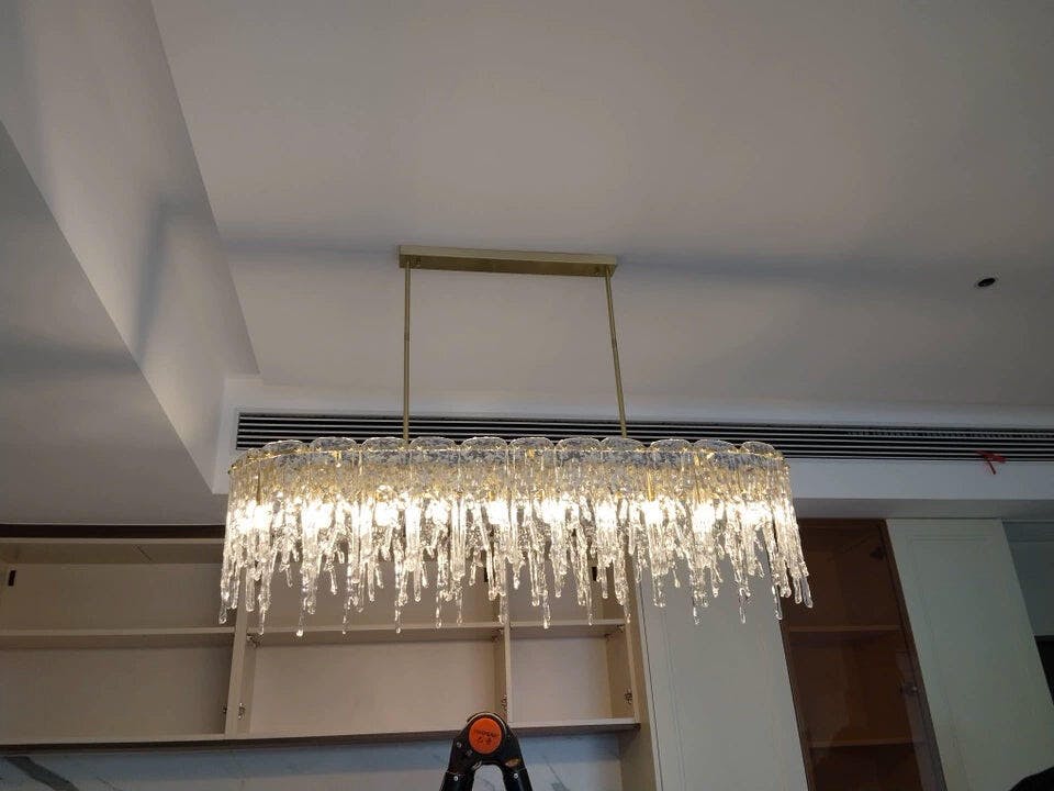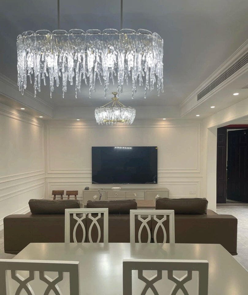 Elevate your space with the Rectangular Icicle Glass Chandelier. Crafted with delicate icicle-shaped glass pieces, this chandelier exudes sophistication and luxury. It will add a touch of elegance and refinement to any room, creating a stunning focal point that will impress guests. Illuminate your home with this exquisite chandelier.