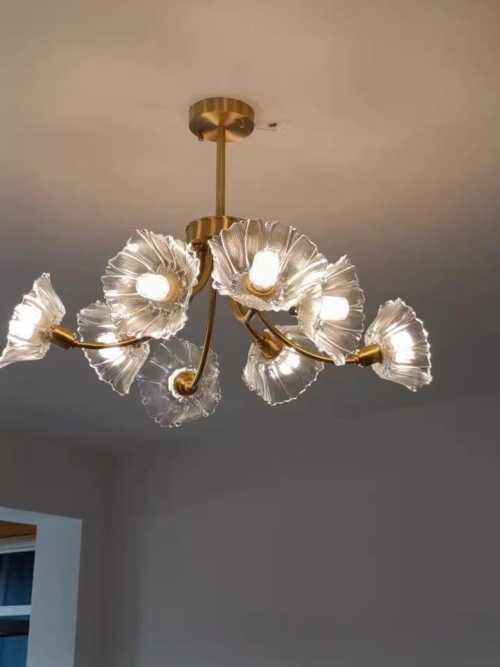 This chandelier is breathtaking. The lotus leaf shapes look magical when lit.