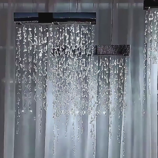 Elevate your dining space with this striking modern crystal tassel waterfall chandelier. Cascading strands of shimmering crystals create a dramatic focal point that captures and reflects light beautifully, casting an enchanting glow throughout your room. The contemporary design seamlessly blends elegance with minimalist aesthetics, making it ideal for dining rooms and kitchen islands. Premium crystal construction ensures lasting brilliance and timeless appeal. Transform ordinary moments into extraordinary experiences with this statement-making lighting fixture that combines artistic vision with functional illumination.