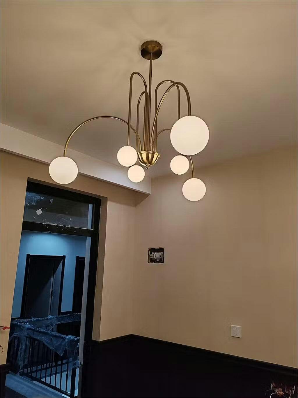 The Orbit Curve Chandelier showcases contemporary lighting design through its thoughtful blend of architectural form and artistic expression. This distinctive fixture features gracefully curved arms that create flowing orbital patterns, offering an appealing interplay of light and shadow.