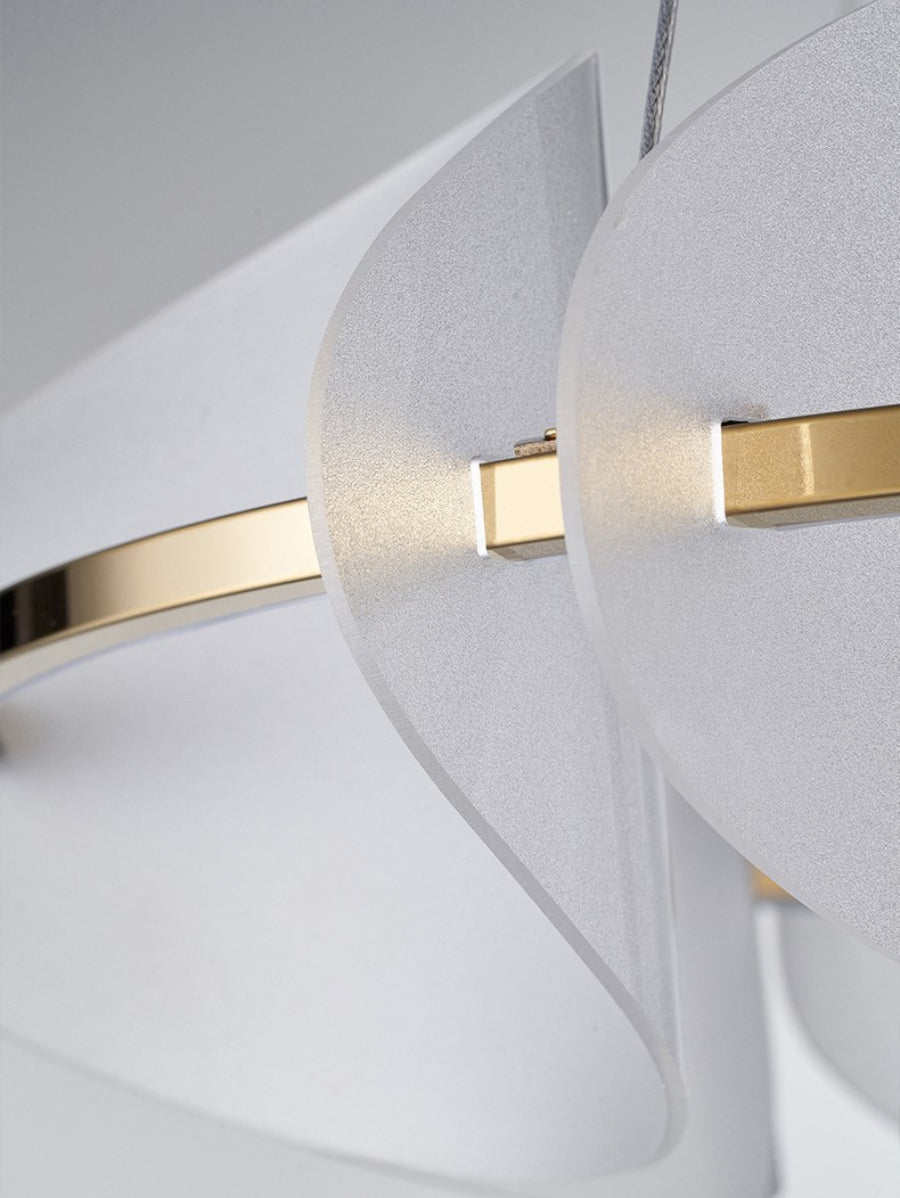 The Tavira Modern Petal Chandelier draws inspiration from the elegance of petals in bloom. Crafted with frosted acrylic panels and accented with golden details, it creates a sophisticated interplay of light and shadow. Suspended by slim cables, its lightweight yet luxurious form enhances both modern and contemporary interiors. Perfect for living rooms, dining spaces, or bedrooms, this chandelier balances functionality with artistic charm, adding a timeless focal point to your home.
