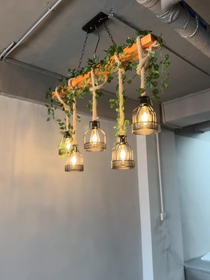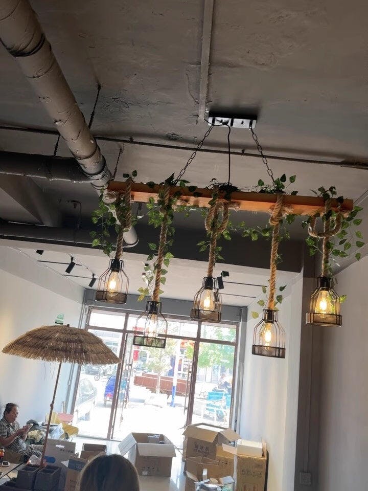 Infused with organic charm and vintage grit, the Vintage Wood Green Chandelier transforms any space into a warm and welcoming retreat. The wooden frame entwined with lush green vines is accented by metal-shaded bulbs and coarse rope suspension, offering an earthy contrast through a blend of raw materials and soft lighting. A true conversation piece that harmonizes industrial structure with natural softness.