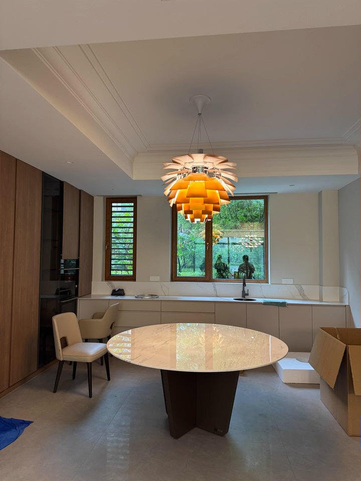 Stunning design but brightness is limited for kitchen prep work in larger spaces