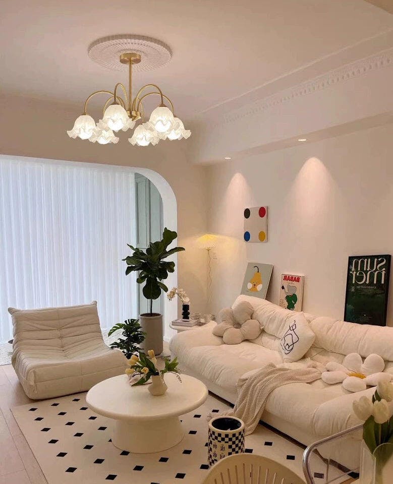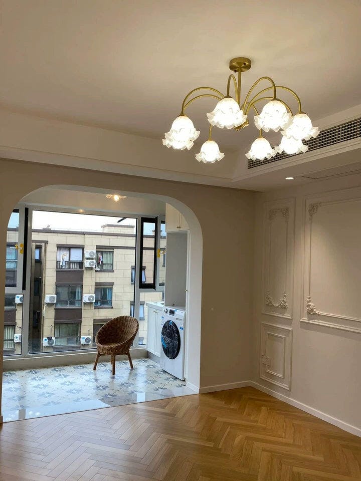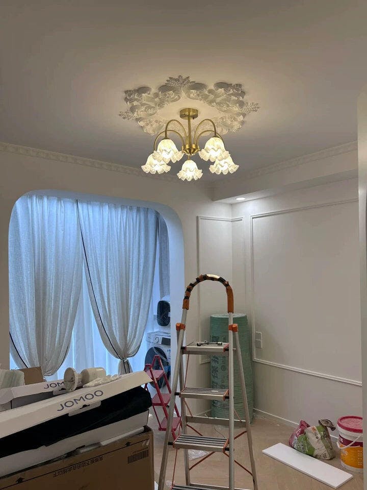 Infuse your home with warmth and nostalgia with the Lily Chandelier. Inspired by vintage floral motifs, this chandelier features delicately flared frosted glass shades that mimic blooming petals. The graceful brass-toned frame adds a timeless elegance, casting a soft, diffused glow that transforms living rooms or dining areas into cozy, romantic spaces. Whether you're curating a vintage-inspired home or adding charm to a cottage-style interior, Lily delivers a touch of poetic ambiance.