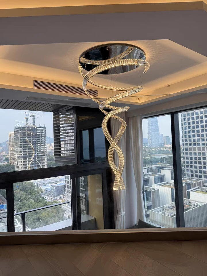 Elevate your interior space with the Loong Spiral Crystal Chandelier, a breathtaking fusion of contemporary design and timeless luxury. This exquisite chandelier features a dynamic spiral structure adorned with premium K9 crystals, reflecting light in mesmerizing patterns that create a glamorous atmosphere. Perfect for grand staircases, high-ceiling living rooms, or sophisticated entryways, this chandelier is a true statement piece.