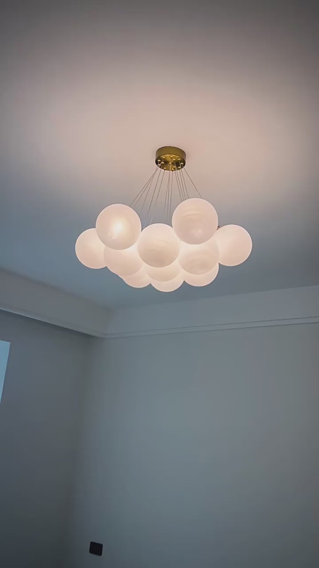 The Glass Bubble Chandelier blends style and function with its airy arrangement of white globe shades and golden metal accents. Designed to spread soft, even light, it works beautifully above dining tables, in cozy living rooms, or as a focal point in open-concept spaces. Its minimalist yet luxurious feel makes it easy to integrate into modern or light-luxury home decor.