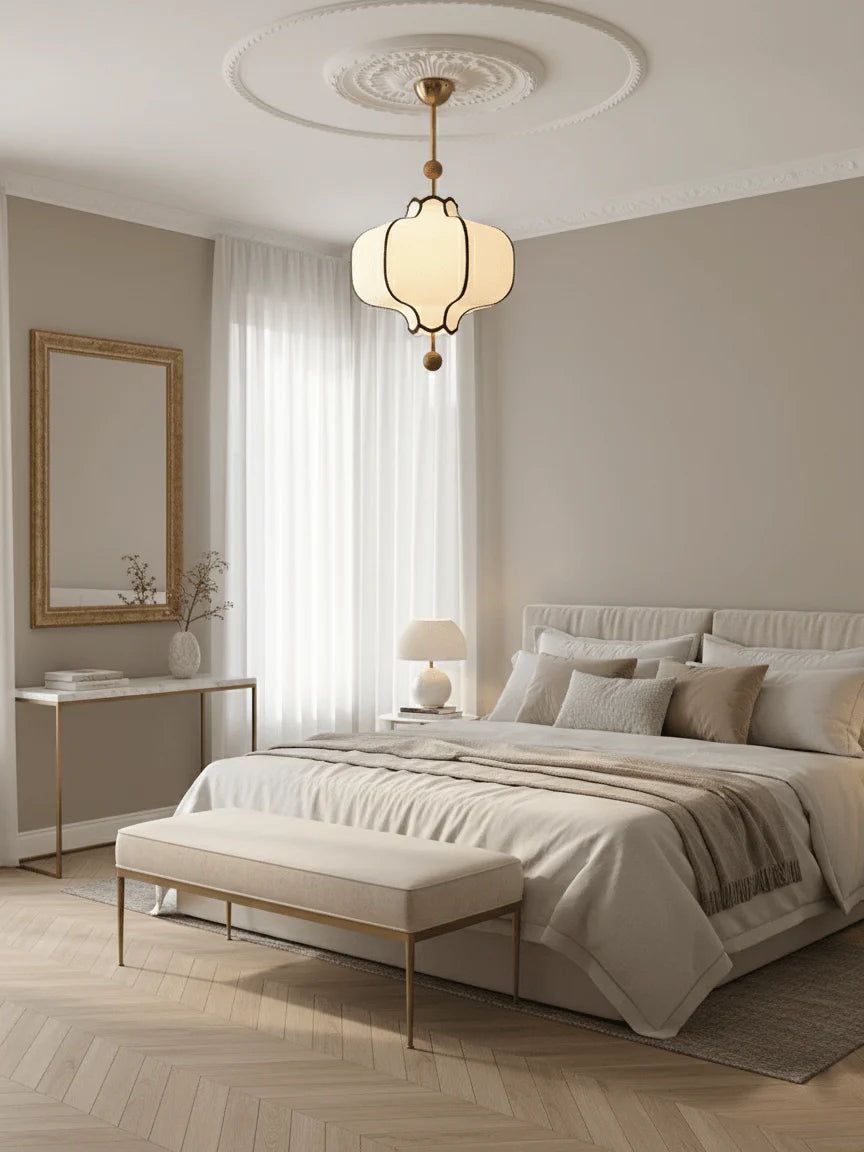Inspired by the soft elegance of traditional lantern forms, the Fabric Lantern Pendant Light blends sculptural curves, warm textures, and minimalist details into a serene contemporary centerpiece.