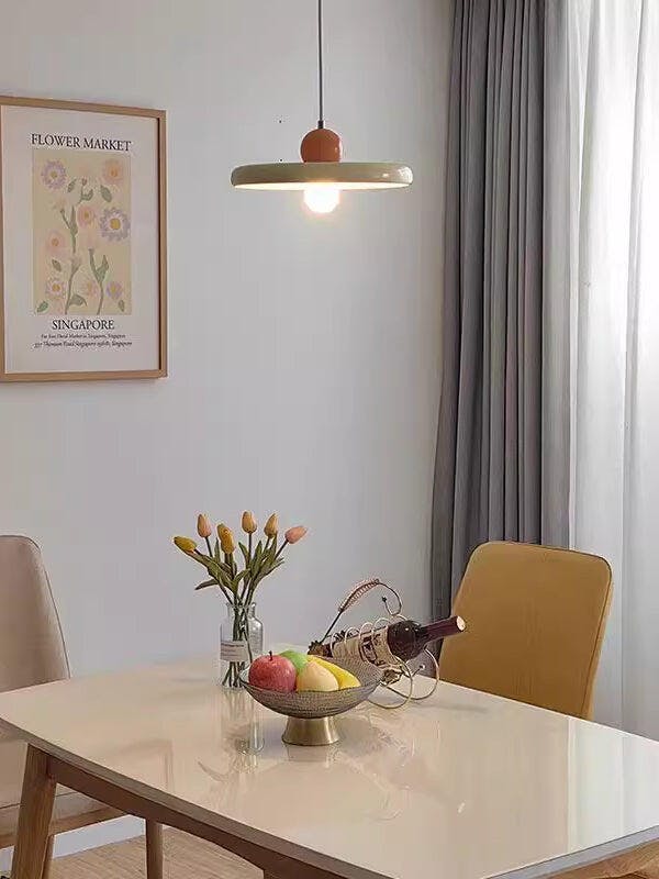Transform your living space with the sleek elegance of our Modern Minimalist Disc Pendant Light. This distinctive hanging lamp embodies a clean, sophisticated aesthetic, perfectly blending modern design principles with the serene charm of Nordic minimalism. Featuring a unique two-tone finish – a soft, inviting upper sphere paired with a broad, flat disc shade – it creates a visually captivating focal point that's both subtle and striking. Ideal for those seeking to enhance their contemporary home decor with a touch of understated luxury and functional artistry.