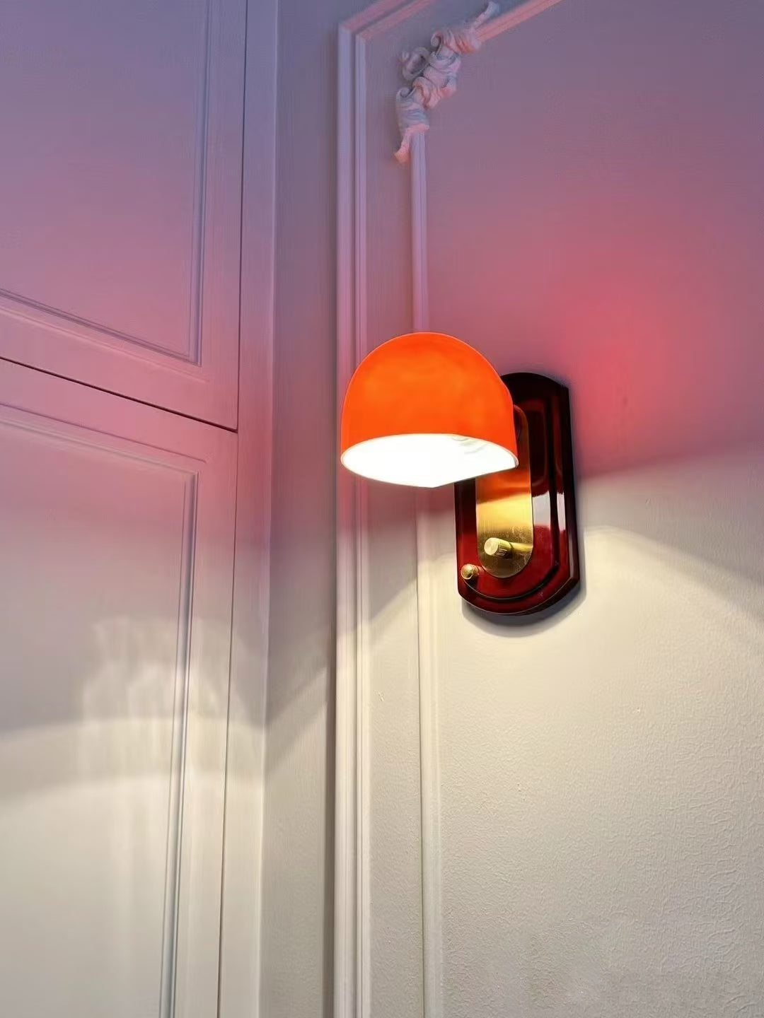 The Lolita Vintage Wall Lamp blends classic charm with luxurious detail. Featuring a glossy red dome-shaped shade paired with a gold-plated backplate, it exudes warmth and sophistication. The combination of rich color and smooth metallic texture creates a timeless retro aesthetic. Ideal for bedrooms, hallways, or cafes, this wall lamp adds a touch of elegance and nostalgia while providing soft, ambient illumination.