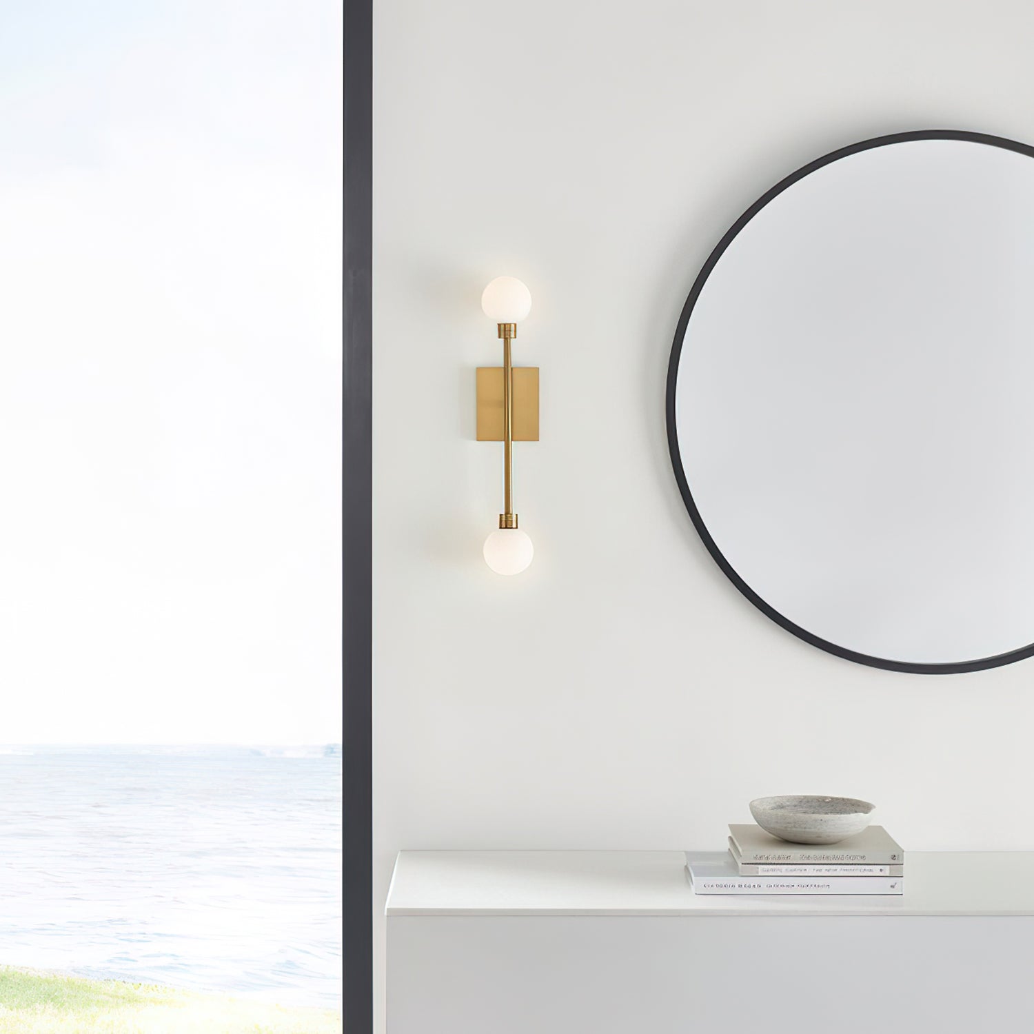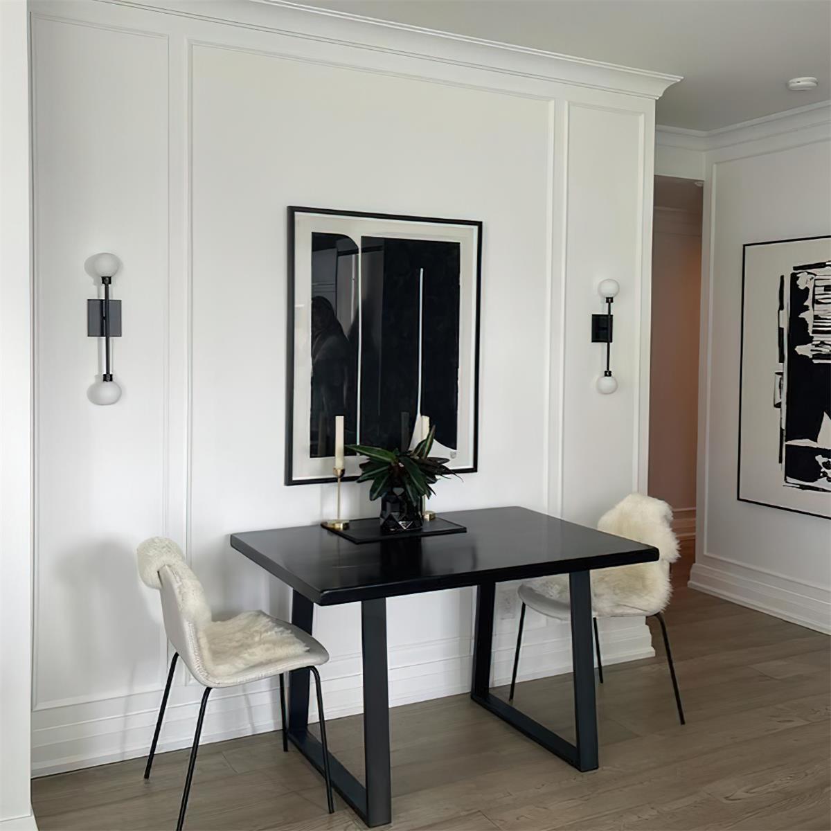 The Mara Wall Lamp embodies modern minimalism with a refined geometric design. Featuring a sleek square base and a slender vertical metal rod, it holds two frosted glass globes on opposite ends. The diffused light creates a warm and inviting glow, balancing elegance with functionality. Available in multiple finishes—matte black, brushed brass, chrome, and satin nickel—it integrates seamlessly into a variety of interiors. Perfect for hallways, bedrooms, or bathrooms, this wall lamp elevates spaces with understated sophistication and versatile style.