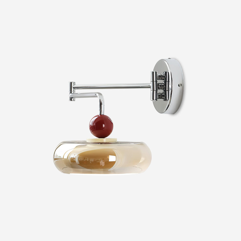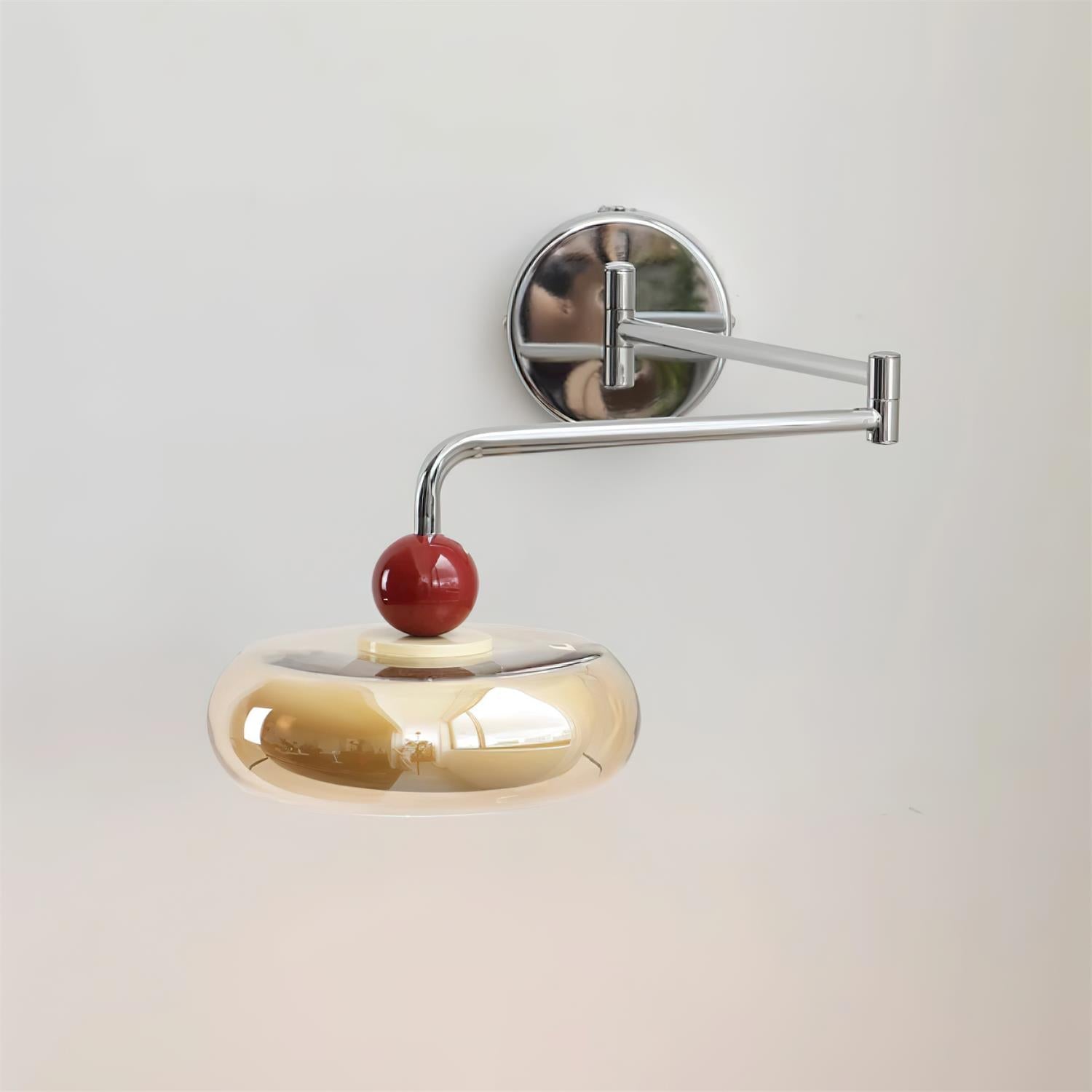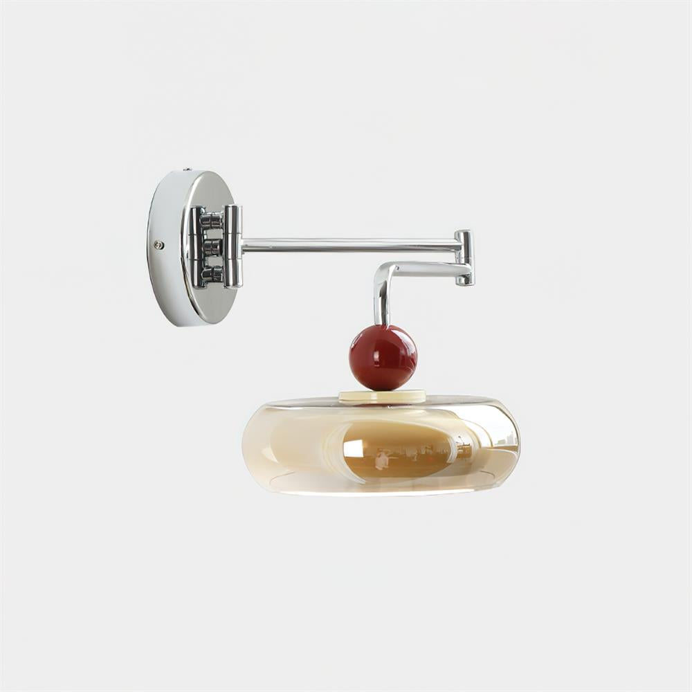 The Rotan Wall Lamp blends modern artistry with functionality through its sleek silver metal folding arm and vibrant red spherical accent. Inside the clear shade, a beige sculptural form adds a unique and innovative touch, making it perfect for contemporary art-inspired spaces. This wall lamp not only illuminates but also serves as a striking decorative element, enhancing your room with creativity and style.