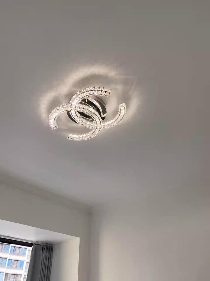 Haal tijdloze elegantie in huis met de moderne Double C kristallen plafondlamp. Geïnspireerd door de iconische esthetiek van Chanel, heeft deze luxe lamp een opvallend dubbel "C"-silhouet, versierd met schitterende kristallen die het licht prachtig reflecteren. Of u hem nu in uw woonkamer, slaapkamer, eetkamer of hal plaatst, hij tilt uw ruimte direct naar een hoger niveau met een gevoel van moderne verfijning en glamour. Perfect voor wie op zoek is naar opvallende, met kristallen versierde plafondverlichting met een modieuze twist.