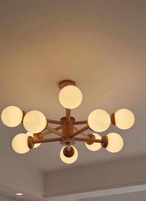 The mix of wood tone and white globes feels organic and soothing. A perfect match for Scandinavian interiors.