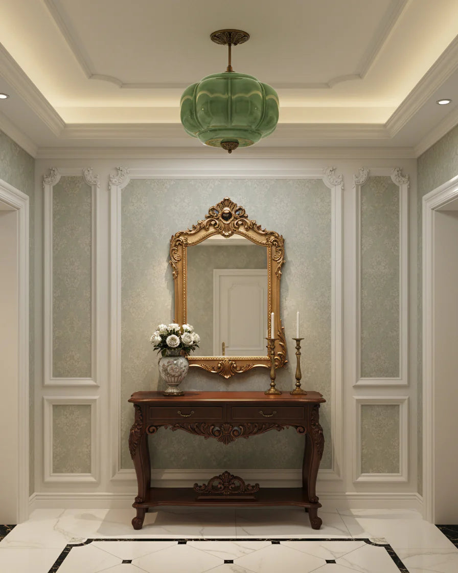 Accented with warm metallic details, Verdelia blends timeless craftsmanship with a contemporary edge, making it ideal for dining rooms, living areas, or entryways seeking a refined statement piece.